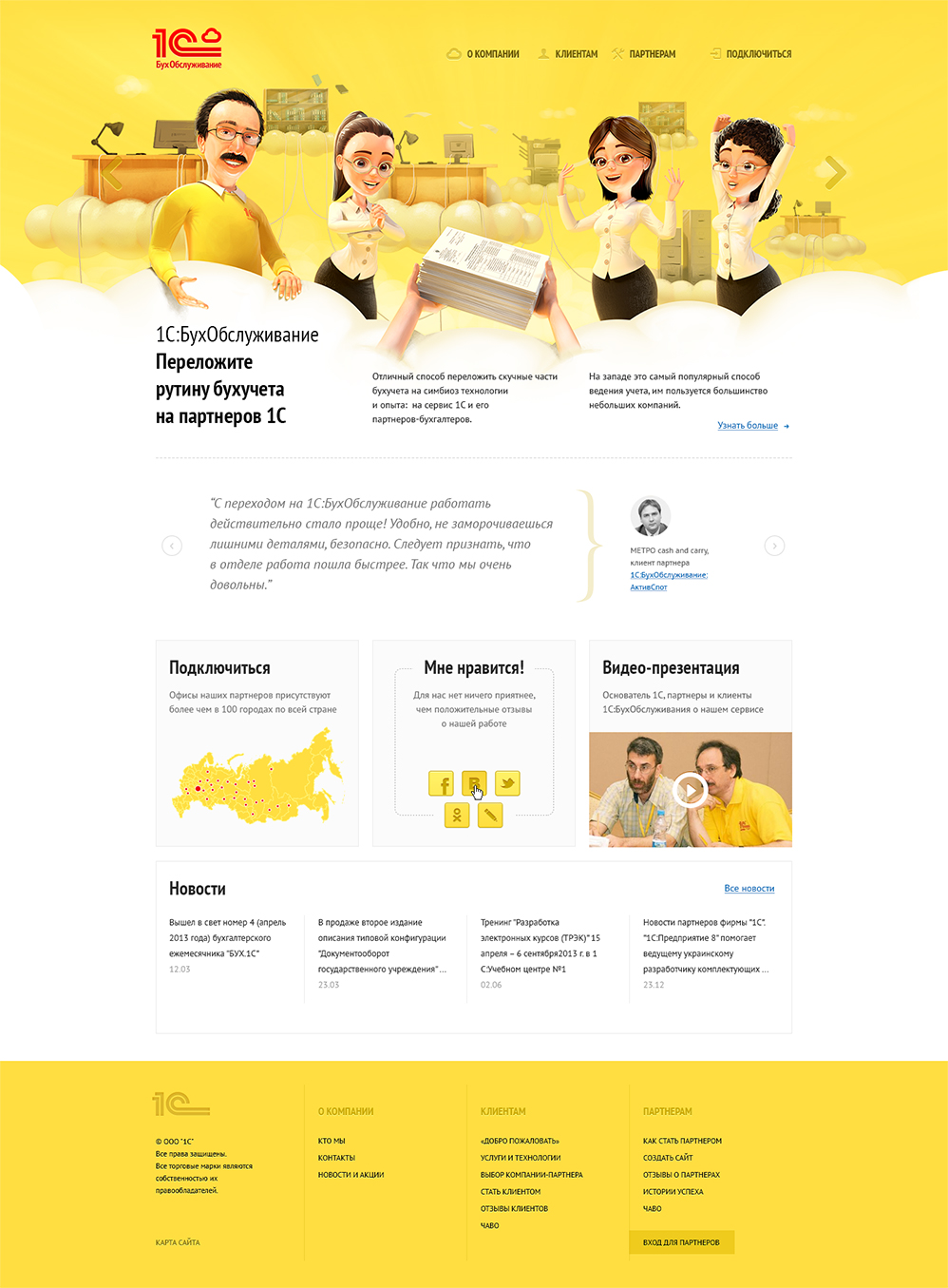 «1С:БухОбслуживание» — это бухгалтерский аутсорсинг на базе партнерской сети и облачных технологий «1С». |